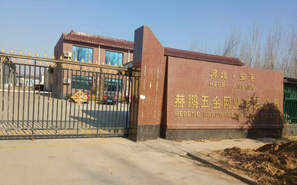 Аньпин Hepeng Абсталяванне Сеткі Co., Ltd мае статутны капітал у 30,1 млн. Наша кампанія была заснавана на базе Anping County Framei Hardware Mesh Factory , якая была заснавана ў 1995 годзе і адзін з самых ранніх спецыялізаваных вытворчасцей плота сетак. Мы знаходзімся ў графстве Anping, Кітай, родны горад з драцяной сеткі. Аньпин Hepeng Абсталяванне Сеткі Co., Ltd. з'яўляецца кампанія , якая спецыялізуецца на шашы плот, чыгуначны плот, блікі экрана, плот аэрапорта, гульнявая пляцоўка плот, калючы дрот сетка плот, плот бяспекі турмы, зварной сеткі плот, Галандыя плот, плот бяспекі, ланцуг плот, шасцікутнай драцяной сеткі плот ...