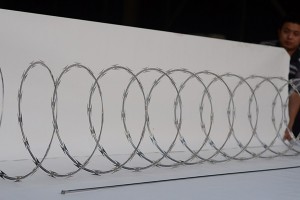Koil Single Concertina Wire wis diinstal tanpa klip, nganggo ing puteran alam ing walls.Cost kurang lan bisa gampang diinstal.