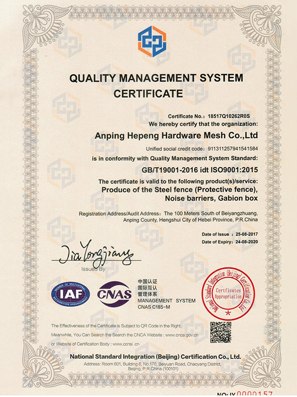 Anping Hepeng Hardware Netting Co., Ltd. has registered capital of 30.1 million. Our company was founded on the basis of Anping County Framei Hardware Mesh Factory which was founded in 1995 and one of the earliest specialized manufactures of fence netting. We are located in Anping County, China, the home town of wire mesh.